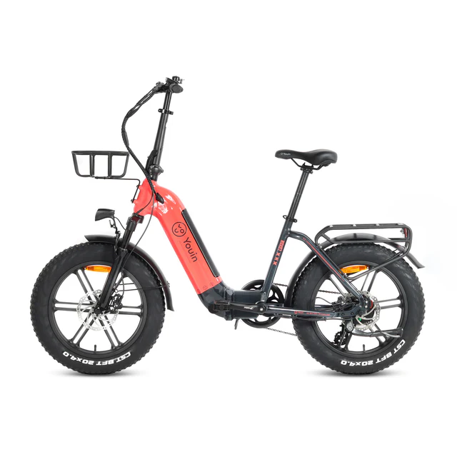 La Youin Luxor es una fat bike eléctrica plegable pensada para quienes buscan comodidad en ciudad y diversión fuera de ella. Su diseño robusto con ruedas de 20” extra anchas garantiza estabilidad y agarre en todo tipo de terrenos.